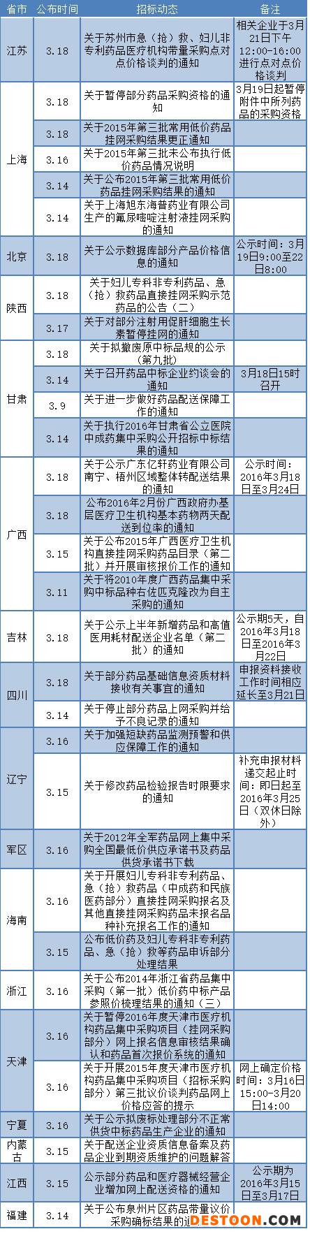 17省最新藥品招標排期一覽(截止到3月18日)