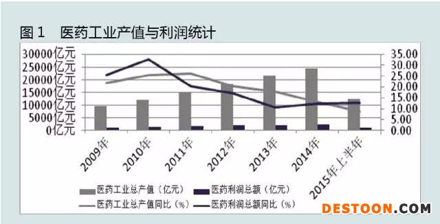 國(guó)家統(tǒng)計(jì)局發(fā)布的數(shù)據(jù)顯示,2015年1-6月,醫(yī)藥工業(yè)實(shí)現(xiàn)主營(yíng)業(yè)務(wù)收入12,355.61億元,同比增長(zhǎng)8.91%,高于全國(guó)工業(yè)整體增速7.51個(gè)百分點(diǎn),但較上年同期降低4.76個(gè)百分點(diǎn);實(shí)現(xiàn)利潤(rùn)總額1262.05億元,同比增長(zhǎng)12.85%,高于全國(guó)工業(yè)整體增速13.55個(gè)百分點(diǎn),但較上年同期降低1.87個(gè)百分點(diǎn)。