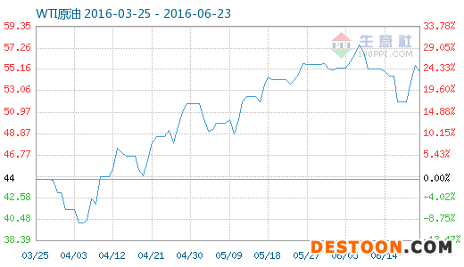 6月23日WTI原油商品指數(shù)為55.25,較昨日上升了0.32點,較周期內(nèi)最高點124.29點(2013-09-08)下降了55.55%,較2016年02月11日最低點29.47點上漲了87.48%。(注:周期指2011-09-01至今)