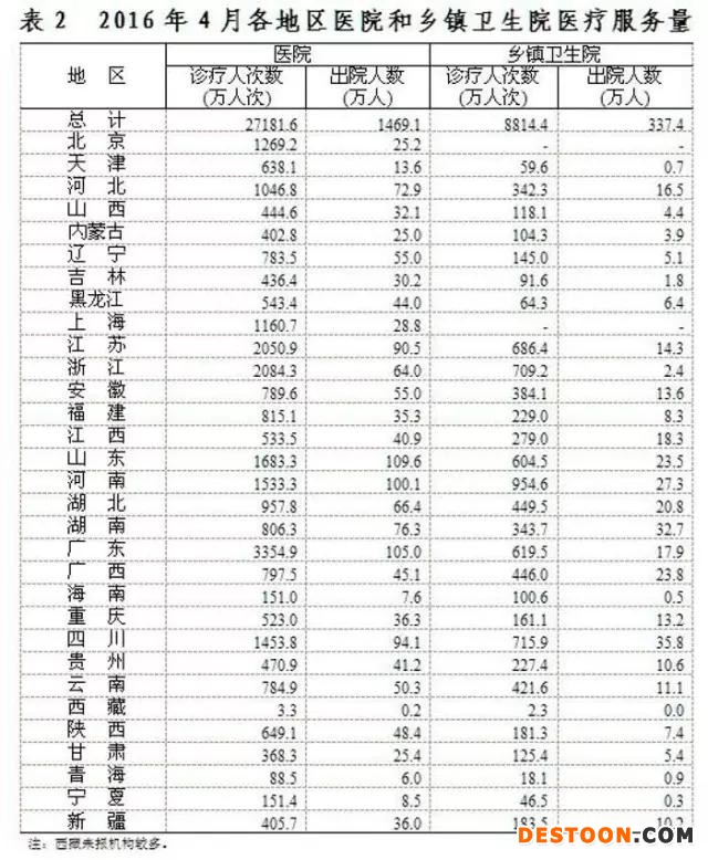 2016年4月底全國(guó)醫(yī)療衛(wèi)生機(jī)構(gòu)數(shù)