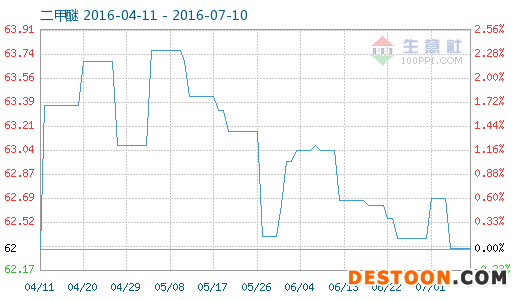 7月10日二甲醚商品指數(shù)為62.33,與昨日持平,較周期內(nèi)最高點(diǎn)115.59點(diǎn)(2013-12-15)下降了46.08%,較2016年02月26日最低點(diǎn)60.78點(diǎn)上漲了2.55%。(注:周期指2011-09-01至今)