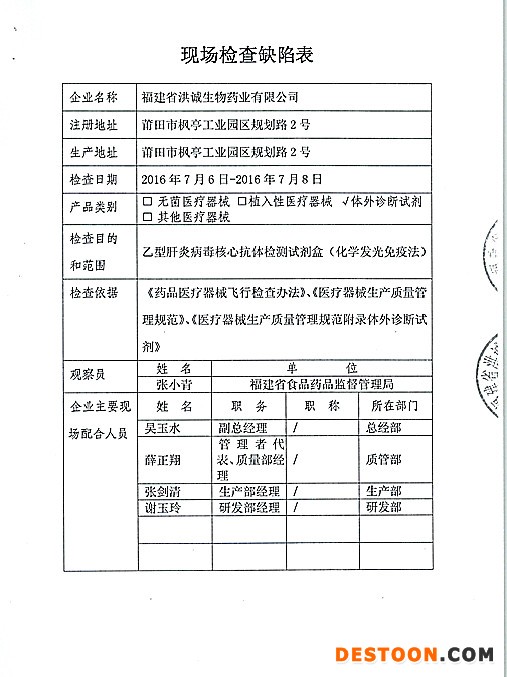 3、對(duì)福建省洪誠(chéng)生物藥業(yè)有限公司飛行檢查情況