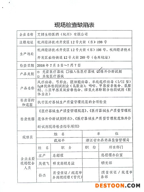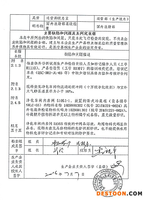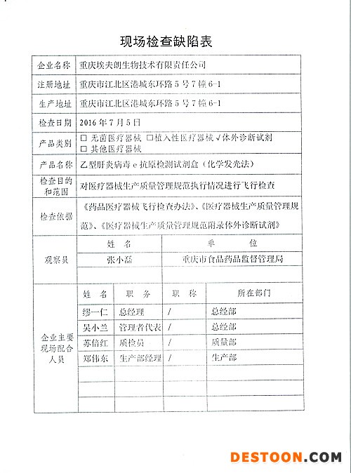 1、對(duì)重慶埃夫朗生物技術(shù)有限責(zé)任公司飛行檢查情況