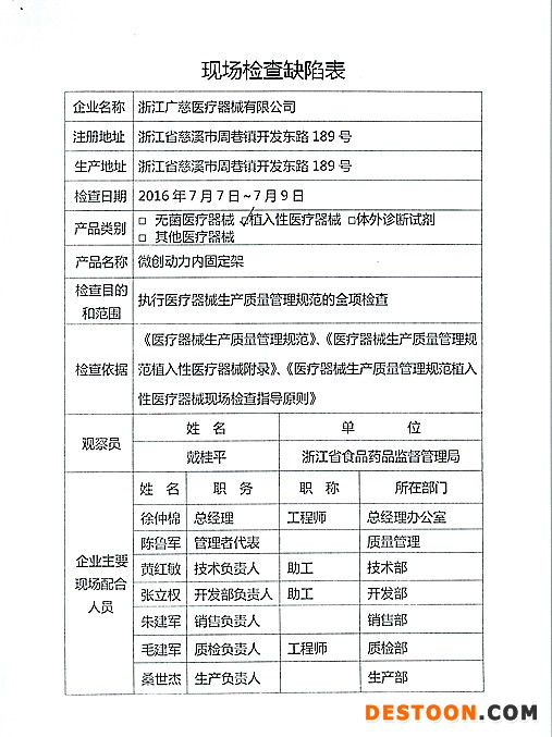 2、對(duì)浙江廣慈醫(yī)療器械有限公司飛行檢查情況