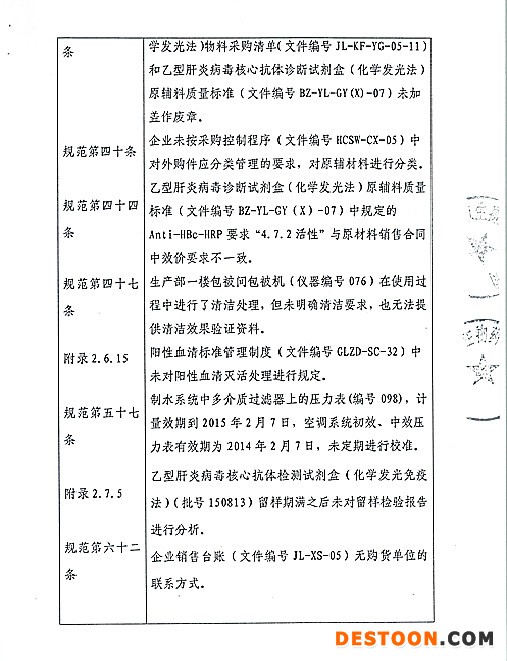 艾博生物醫(yī)藥(杭州)有限公司的以下行為(見(jiàn)下表)不符合醫(yī)療器械生產(chǎn)質(zhì)量管理規(guī)范相關(guān)要求,質(zhì)量管理體系存在缺陷?,F(xiàn)由浙江省食品藥品監(jiān)督管理局責(zé)成艾博生物醫(yī)藥(杭州)有限公司對(duì)上述缺陷限期整改。