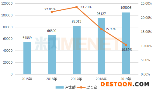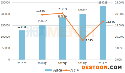 圖1:2015-2019年中國公立醫(yī)療機構(gòu)終端米力農(nóng)注射液銷售情況(單位:萬元)