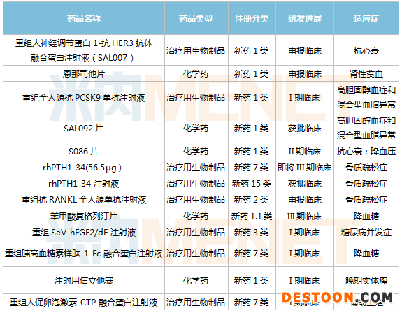信立泰主要在研新藥