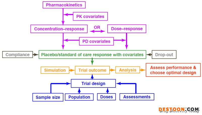 對于POM,POC研究來說,他們有點(diǎn)類似于臨床早期階段的PK/PD研究,或者你將其理解為PK/PD研究的一部分也不錯(cuò)。當(dāng)然,子集和母集也是有區(qū)別的。POM選擇的生物標(biāo)記物主要和候選分子的作用機(jī)制相關(guān);POC研究選擇與臨床療效有關(guān)的下游生物標(biāo)志物作為指標(biāo)。另外,PK/PD研究可以進(jìn)行建模和模擬的方法進(jìn)行,而POM,POC通常都是實(shí)打?qū)嵉难芯浚蛔鼋:湍M。凡事有例外,我們在下面就會看到反例。