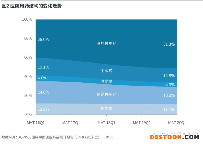 此前,醫(yī)保政策曾限制非藥品類在藥店銷售,造成保健品類別2019年的增速下降8%。結(jié)合這一案例,IQVIA預(yù)測,此番醫(yī)保目錄調(diào)整方案一旦落地,在未來3-5年將對OTC和零售藥店造成巨大沖擊——OTC藥品分為治療性用藥和預(yù)防性用藥,治療性用藥的需求持續(xù)存在。對照醫(yī)院市場,藥品在今年一季度疫情影響同比增速顯著下降的情況下,治療性用藥依然保持高于市場平均的增幅。如果目錄調(diào)整如期落地,這部分OTC的治療需求或回到醫(yī)療機構(gòu)由處方藥替代。盡管隨著處方外流的推進最終依然會流向零售渠道,但是這將經(jīng)歷一個“顧客先回流醫(yī)療機構(gòu),主要是社區(qū)醫(yī)院,之后再返流至藥店和電商”的過程,短期內(nèi)對OTC和線下零售藥店會造成較大的影響。(參見圖2)