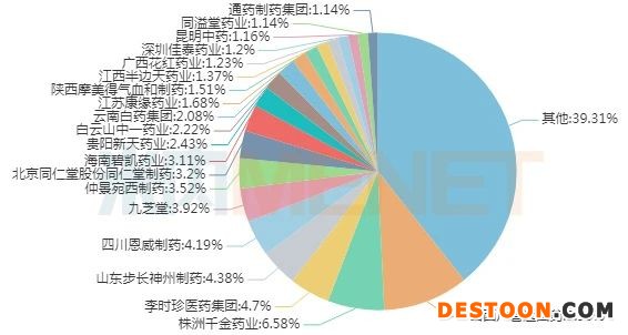從TOP20廠家銷售格局來(lái)看,山西廣譽(yù)遠(yuǎn)國(guó)藥、株洲千金藥業(yè)、李時(shí)珍醫(yī)藥集團(tuán)、山東步長(zhǎng)神州制藥、四川恩威制藥位居前五,市場(chǎng)份額合計(jì)近30%。