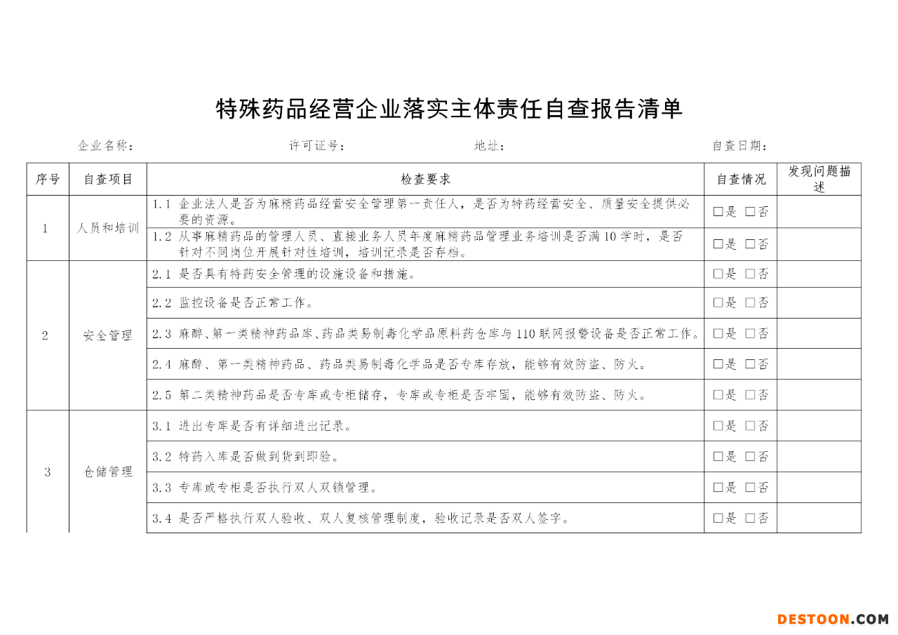 附:特殊藥品經(jīng)營企業(yè)落實(shí)主體責(zé)任自查報(bào)告清單