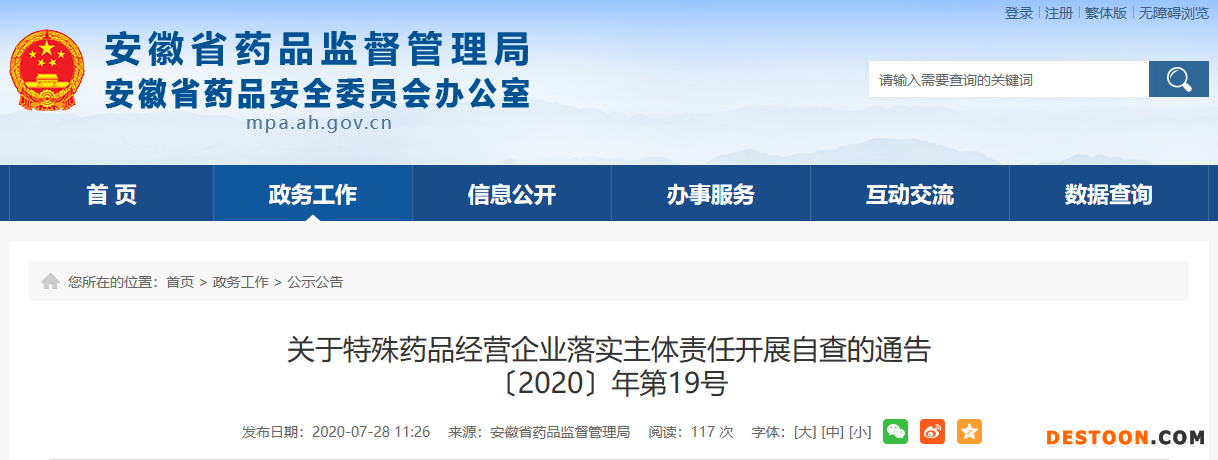 7月28日,安徽省藥監(jiān)局發(fā)布了《關(guān)于特殊藥品經(jīng)營企業(yè)落實(shí)主體責(zé)任開展自查的通告〔2020〕年第19號》(以下簡稱《自查通告》)。