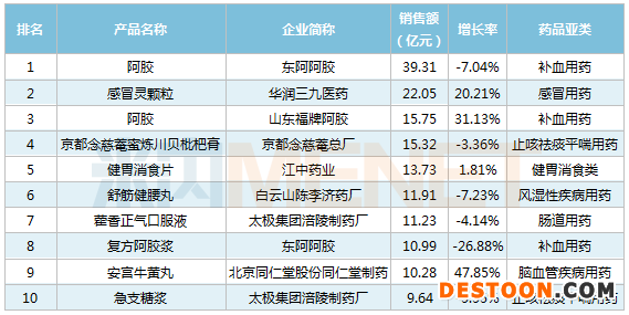 北京同仁堂股份同仁堂制藥的安宮牛黃丸以47.85%的銷售增長(zhǎng)率領(lǐng)跑,福牌阿膠的阿膠則以31.13%的銷售增長(zhǎng)位列第二。江中藥業(yè)的健胃消食片銷售額則繼續(xù)保持在13億元以上,有望沖擊14億元。