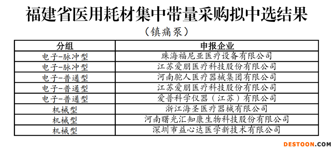 密閉式留置針擬中選企業(yè)包括BD、山東新華安得、三鑫醫(yī)療、蘇州魚躍等械企;鎮(zhèn)痛泵擬中選企業(yè)包括、江蘇愛(ài)朋、河南駝人、珠海福尼亞等械企。