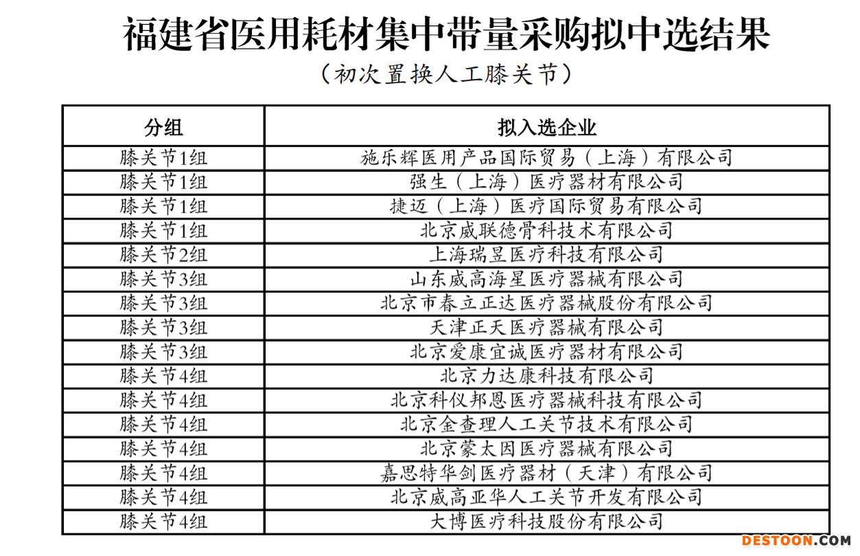 據(jù)了解,7月10日福建省醫(yī)保局發(fā)布耗材集中帶量采購(gòu)的結(jié)果通知,涉及人工關(guān)節(jié)(包括人工全髖關(guān)節(jié)、人工膝關(guān)節(jié))、留置針、超聲刀、鎮(zhèn)痛泵等4類耗材。