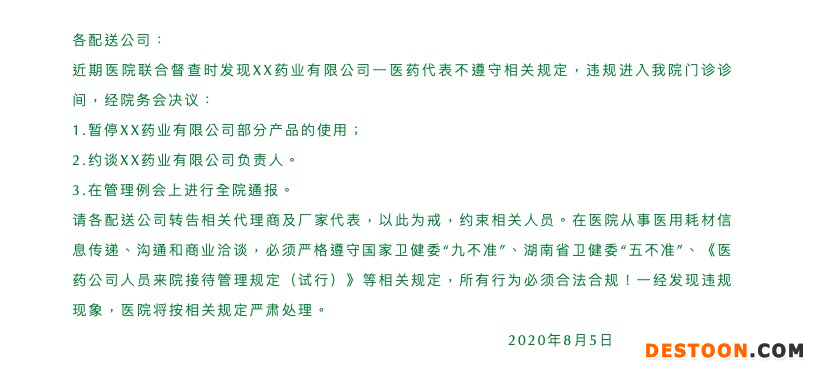 在嚴(yán)查醫(yī)療腐敗的大環(huán)境下,醫(yī)藥企業(yè)的院內(nèi)推廣行為也面臨著極大的壓力。近期,就有多家醫(yī)院通報(bào)了醫(yī)藥代表的一些推廣行為,甚至有醫(yī)院直接向醫(yī)藥代表發(fā)出禁令。在這一背景下,醫(yī)藥企業(yè)和醫(yī)藥代表均需要注意自身的線下業(yè)務(wù)安排和推廣行動(dòng)了。