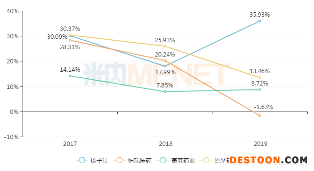 近年中國(guó)公立醫(yī)療機(jī)構(gòu)終端神經(jīng)系統(tǒng)化藥4家江蘇藥企增速表現(xiàn)