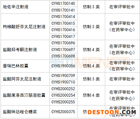 今年上半年在審的神經(jīng)系統(tǒng)化藥仿制藥情況