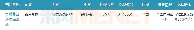 圖2:鹽酸莫西沙星滴眼液的醫(yī)保情況