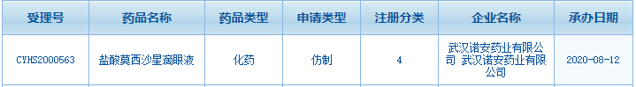 圖1:武漢諾安藥業(yè)的鹽酸莫西沙星滴眼液注冊情況