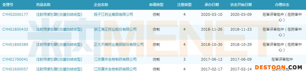 注射用紫杉醇(白蛋白結(jié)合型)上市申請在審評企業(yè)