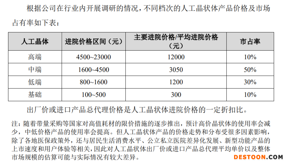人工晶狀體產(chǎn)品價(jià)格區(qū)間