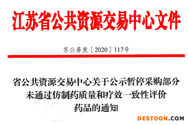 8月24日訊 8月20日,江蘇省公共資源交易中心發(fā)布《關(guān)于公示暫停采購部分未通過仿制藥質(zhì)量和療效一致性評(píng)價(jià)藥品的通知》(以下簡(jiǎn)稱《通知》)。
