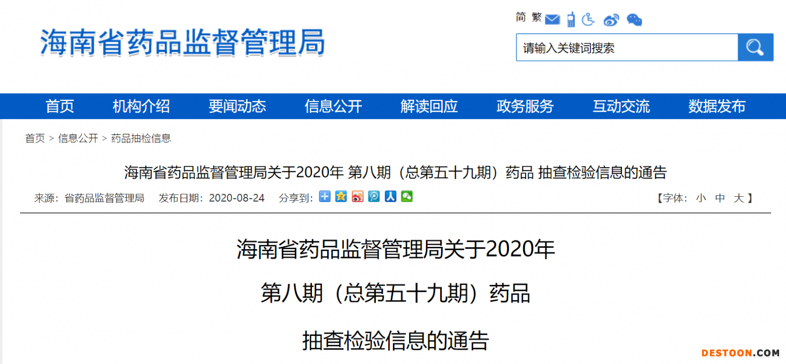 為加強藥品質(zhì)量監(jiān)管,保障公眾用藥安全,按照2020年海南省藥品抽驗計劃及日常監(jiān)督抽樣需要,我局組織對全省范圍內(nèi)藥品生產(chǎn)、經(jīng)營、使用單位進行了藥品質(zhì)量抽查檢驗。現(xiàn)將2020年7月藥品抽查檢驗結(jié)果通告如下: