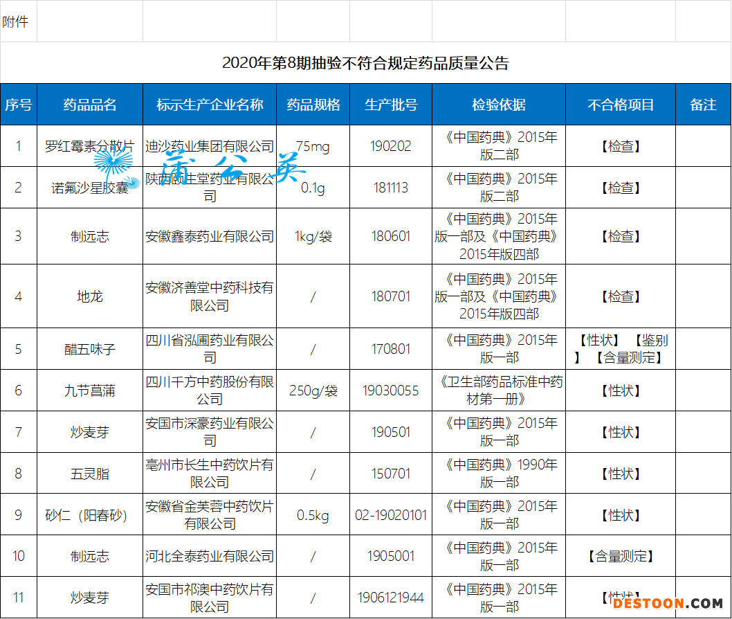 附件:2020年第8期抽驗不符合規(guī)定藥品質(zhì)量公告
