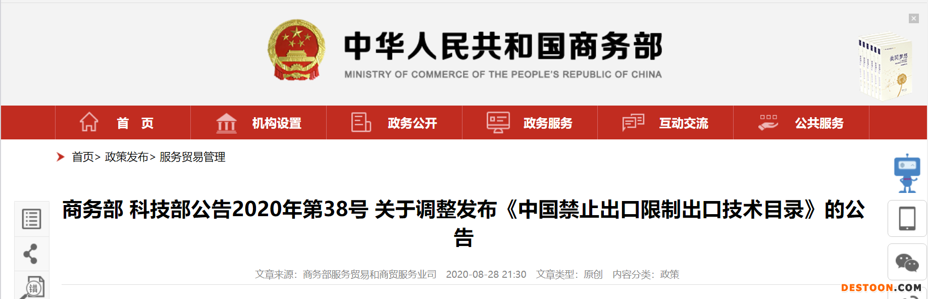 9月1日訊 8月28日,商務(wù)部、科技部調(diào)整發(fā)布《中國禁止出口限制出口技術(shù)目錄》(商務(wù)部科技部公告2020年第38號,以下簡稱《目錄》)。