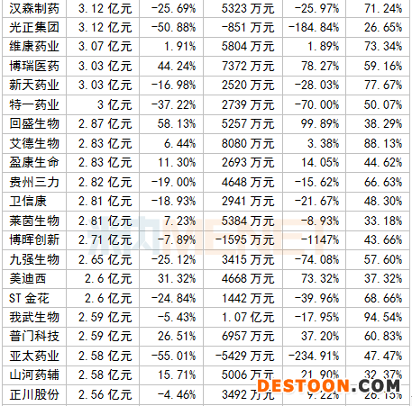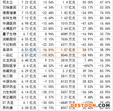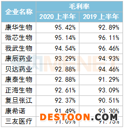 A股醫(yī)藥企業(yè)2020上半年毛利率TOP10