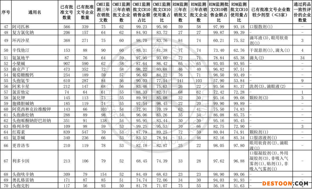 另,從已公布的目錄來(lái)看,目前很多品種已經(jīng)高度飽和,并不適合繼續(xù)申報(bào)新的批文,尤其是普藥,例如氨氯地平片、阿莫西林膠囊等,競(jìng)爭(zhēng)極其激烈,并且氨氯平片有34家通過(guò)一致性評(píng)價(jià),阿莫西林有19家通過(guò)一致性評(píng)價(jià)。在集中采購(gòu)逐漸常態(tài)化之下,低質(zhì)量不具競(jìng)爭(zhēng)的仿制藥逐漸被淘汰,過(guò)度重復(fù)藥品目錄的發(fā)布,有力的幫助了企業(yè)決策,同時(shí)從行政手段來(lái)限制藥企的申報(bào),為先獲得批文的生產(chǎn)廠家制造了競(jìng)爭(zhēng)壁壘。一些不具市場(chǎng)競(jìng)爭(zhēng)的企業(yè),很可能會(huì)逐漸被市場(chǎng)淘汰,最終注銷批文。從另一方便來(lái)看或?qū)⒂行У奶嵘怂幤返馁|(zhì)量,做到質(zhì)優(yōu)價(jià)廉,保障了資源的合理利用,又福利了患者。