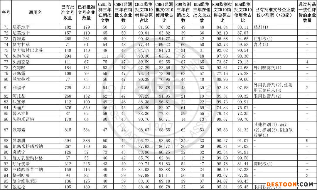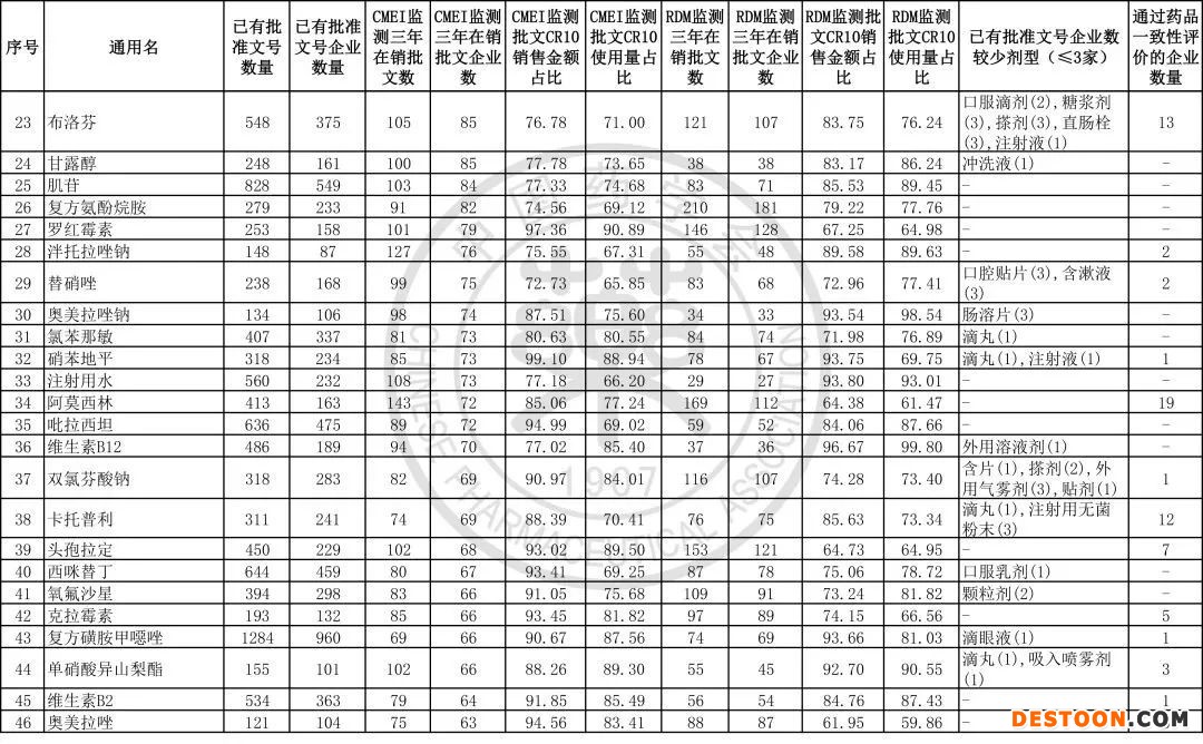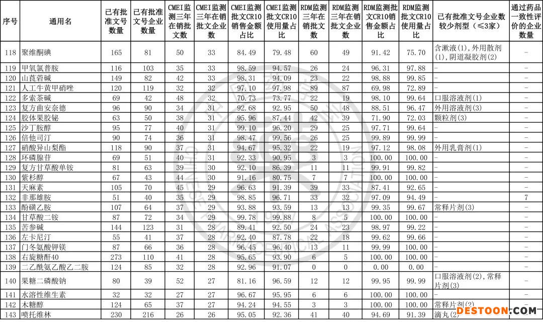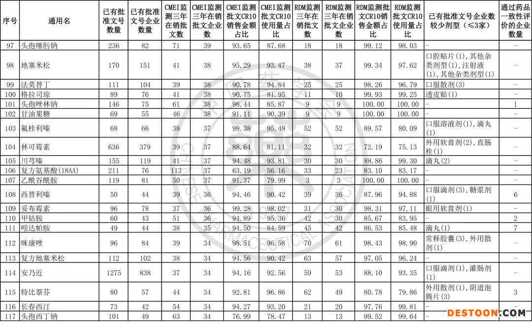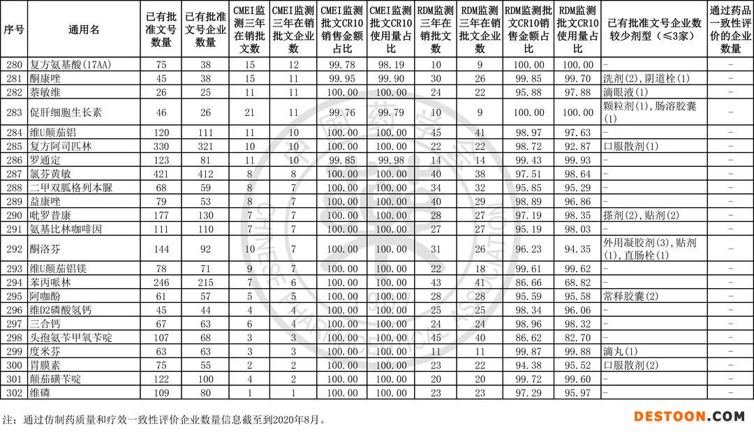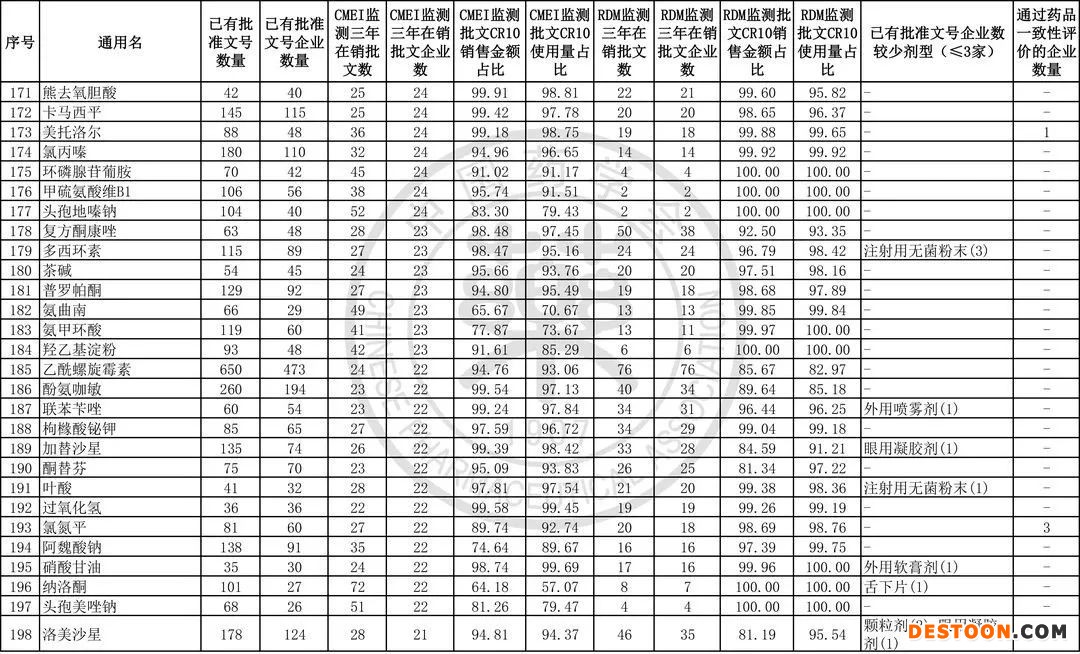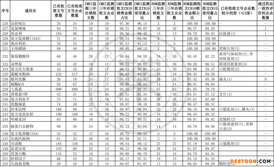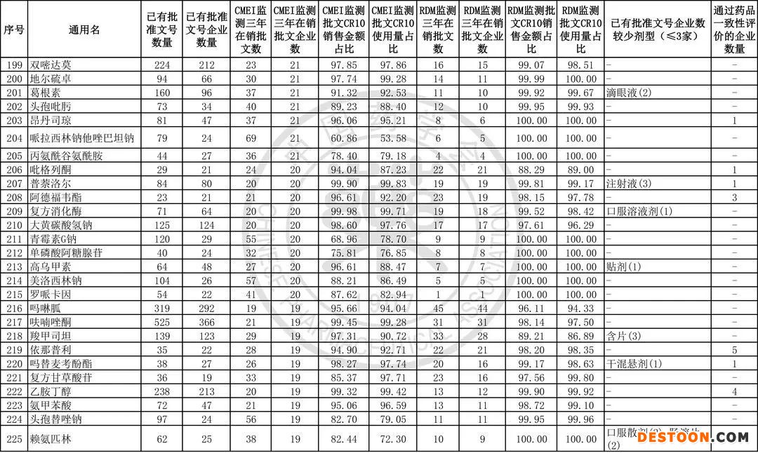 根據(jù)公告顯示, 該目錄是中國(guó)藥學(xué)會(huì)和國(guó)家藥品監(jiān)督管理局信息中心、南方醫(yī)藥經(jīng)濟(jì)研究所共同協(xié)作,對(duì)已獲批上市藥品在2017-2019年間的銷售情況進(jìn)行監(jiān)測(cè)分析,形成第六批過(guò)度重復(fù)藥品提示信息目錄,共302個(gè)過(guò)度重復(fù)品種,涉及臨床藥理學(xué)和治療學(xué)分類的14個(gè)大類、60個(gè)亞類,與《關(guān)于發(fā)布第五批過(guò)度重復(fù)藥品提示信息的公告》發(fā)布的過(guò)度重復(fù)品種目錄相比,調(diào)出1個(gè)品種;目錄提示信息新增兩項(xiàng)數(shù)據(jù)內(nèi)容,一是基于中國(guó)上市藥品目錄集對(duì)通過(guò)仿制藥質(zhì)量和療效一致性評(píng)價(jià)的企業(yè)數(shù)量進(jìn)行標(biāo)注;二是基于藥品已有批文數(shù)據(jù)庫(kù),對(duì)已有批文企業(yè)數(shù)≤3的劑型進(jìn)行標(biāo)注。