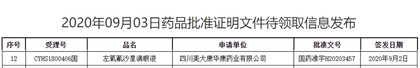 圖1:四川美大康華康藥業(yè)的左氧氟沙星滴眼液獲批情況