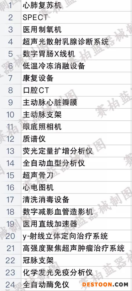 動(dòng)態(tài)調(diào)整品目包括心電圖機(jī)、清洗消毒設(shè)備、數(shù)字減影血管造影機(jī)、醫(yī)用直線加速器、γ-射線立體定向治療系統(tǒng)、高強(qiáng)度聚焦超聲腫瘤治療系統(tǒng)、冠脈支架、化學(xué)發(fā)光免疫分析儀、全自動(dòng)酶免儀。