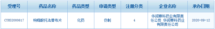 9月15日訊 日前,華潤(rùn)賽科藥業(yè)的枸櫞酸托法替布片以仿制4類提交上市申請(qǐng)獲受理。米內(nèi)網(wǎng)數(shù)據(jù)顯示,2019年輝瑞托法替布全球銷售額超過20億美元;在中國(guó)公立醫(yī)療機(jī)構(gòu)終端枸櫞酸托法替布片銷售額雖然不足5000萬元,但同比增長(zhǎng)卻超過400%。截至目前,擁有枸櫞酸托法替布片的國(guó)產(chǎn)批文廠家有正大天晴藥業(yè)集團(tuán)、齊魯制藥、湖南科倫制藥、揚(yáng)子江藥業(yè)集團(tuán)江蘇紫龍藥業(yè)等6家。在此之前,該產(chǎn)品已有石藥集團(tuán)歐意藥業(yè)、成都倍特藥業(yè)、浙江海正藥業(yè)等9家企業(yè)以仿制4類申報(bào)上市,目前在審評(píng)審批中(在藥審中心),獲批后將視同過評(píng)。