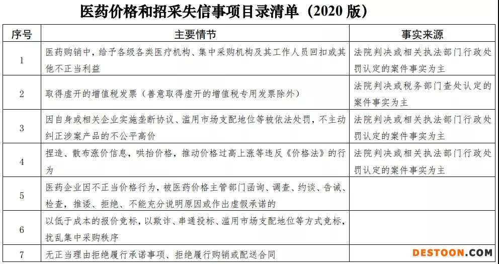 國家醫(yī)療保障局建立醫(yī)藥價格和招采失信事項目錄清單,實行動態(tài)調(diào)整,列入目錄清單的失信事項主要包括在醫(yī)藥購銷中給予回扣或其他不正當(dāng)利益(以下簡稱“醫(yī)藥商業(yè)賄賂”)、涉稅違法、實施壟斷行為、不正當(dāng)價格行為、擾亂集中采購秩序、惡意違反合同約定等有悖誠實信用的行為。自本意見印發(fā)之日起,醫(yī)藥企業(yè)(含藥品生產(chǎn)許可持有人、藥品和醫(yī)用耗材生產(chǎn)企業(yè)、與生產(chǎn)企業(yè)具有委托代理關(guān)系的經(jīng)銷企業(yè),以及配送企業(yè),下同)在定價、投標(biāo)、履約、營銷等過程中,通過目錄清單所列失信事項牟取不正當(dāng)利益的,納入醫(yī)藥價格和招采信用評價范圍。