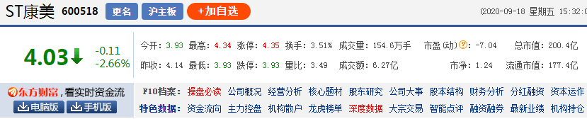 9月3日,ST康美復(fù)牌,受到此利好消息刺激,連續(xù)9個(gè)交易日漲停,在此期間,因股價(jià)連續(xù)漲停,ST康美多次發(fā)布風(fēng)險(xiǎn)提示公告;9月16日,ST康美開盤漲停,正當(dāng)投資者以為第10個(gè)漲停可以收入囊中的時(shí)候,股價(jià)突然跳水,最終當(dāng)天上演了“天地板”,以跌停收盤;9月17日,ST康美繼續(xù)跌停;截至9月18日收盤,市值200億元。對(duì)此,有業(yè)內(nèi)人士分析指出,由于ST股的基本面較差,投資者應(yīng)注意風(fēng)險(xiǎn),要理性看待、認(rèn)真分析其原因和影響,避免盲目追漲,跟風(fēng)炒作,造成不必要的損失。