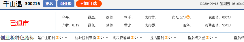 9月15日,千山退(千山藥機(jī))發(fā)布公告稱,公司股票于2020年8月5日進(jìn)入退市整理期,截至9月15日已滿30個(gè)交易日,退市整理期已結(jié)束。公司股票已被深交所決定終止上市,將在9月16號(hào)被摘牌。千山藥機(jī)從進(jìn)入退市整理期股價(jià)開始連續(xù)29個(gè)一字跌停,最終股價(jià)定格在0.19元,與歷史高價(jià)相比跌幅達(dá)99.75%,創(chuàng)下A股最大下跌紀(jì)錄。據(jù)了解,千山藥機(jī)在2015-2016年年報(bào)中存在虛減應(yīng)收賬款、壞賬準(zhǔn)備、虛增利潤(rùn)等情形,兩年虛增利潤(rùn)合計(jì)超4億元;2017年存在信披違規(guī)等情形,近三年公司凈利潤(rùn)虧損合計(jì)超過35億元。截至2020年5月,千山藥機(jī)股東人數(shù)4.82萬(wàn)。