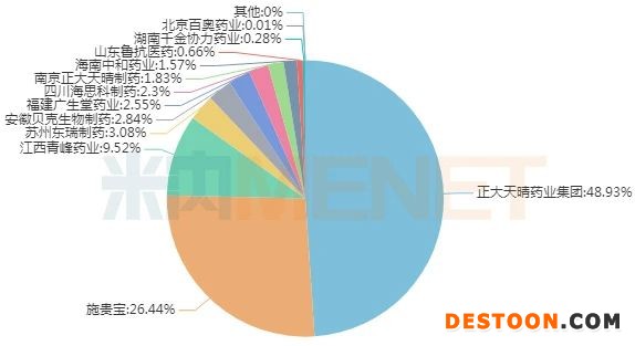 米內(nèi)網(wǎng)數(shù)據(jù)顯示,2019年在中國城市公立醫(yī)院、縣級公立醫(yī)院、城市社區(qū)中心及鄉(xiāng)鎮(zhèn)衛(wèi)生院(簡稱中國公立醫(yī)療機構)終端恩替卡韋銷售額超過70億元,劑型有膠囊劑和片劑兩種,在TOP20品牌中,正大天晴藥業(yè)集團占比最大,達48.93%;其次是施貴寶占26.44%;江西青峰藥業(yè)位居第三,占9.52%。