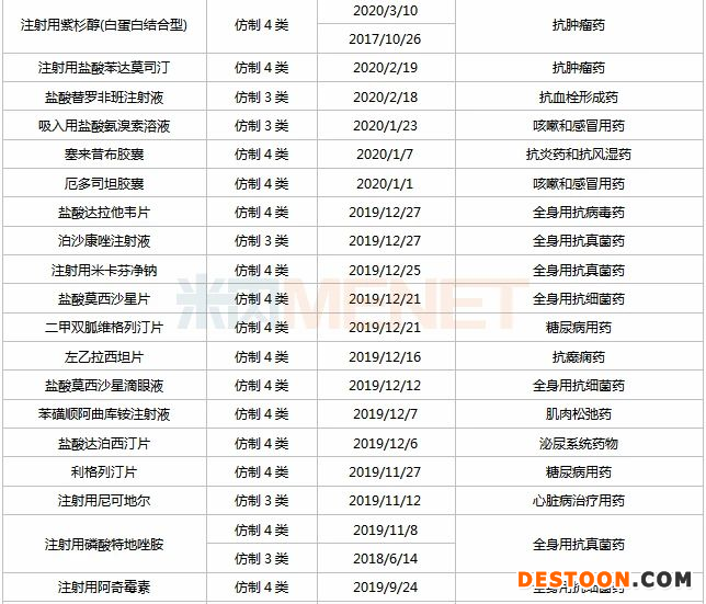 表3:未有仿制藥獲批上市的品種