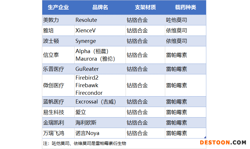 可能參加全國集采的冠脈支架(不完全統(tǒng)計)
