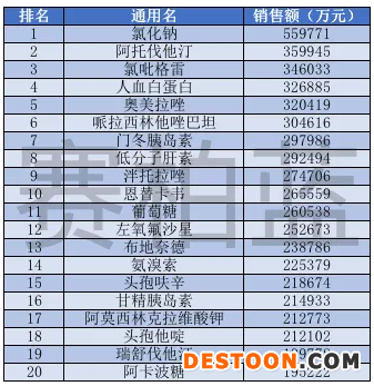 縣級(jí)公立醫(yī)院化學(xué)藥用藥市場(chǎng)TOP20