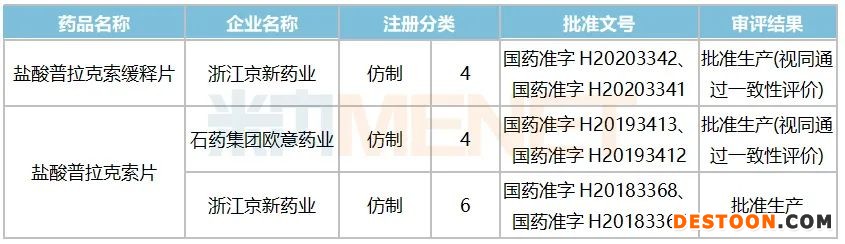 表1:截至目前獲批的國(guó)產(chǎn)普拉克索相關(guān)產(chǎn)品情況