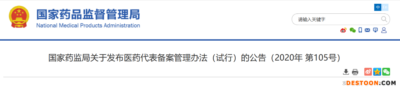第八條 藥品上市許可持有人應(yīng)當(dāng)在本公司網(wǎng)站上公示所聘用或者授權(quán)的醫(yī)藥代表信息。如本公司沒有網(wǎng)站的,應(yīng)當(dāng)在相關(guān)行業(yè)協(xié)會(huì)網(wǎng)站上公示。