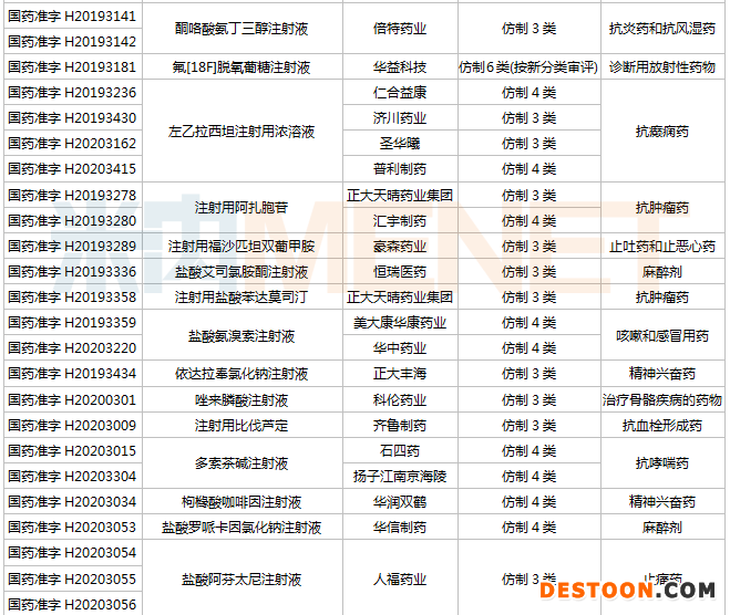 此外,上海禾豐制藥的硫酸鎂注射液、海南普利制藥的注射用比伐蘆定、江蘇盈科生物的丙泊酚中/長鏈脂肪乳注射液、江蘇萬高藥業(yè)的左乙拉西坦注射液、江蘇杜瑞制藥的注射用甲磺酸萘莫司他上市申請已進入行政審批階段,有望在近日獲批并視同過評。