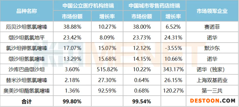 表1:作用于腎素-血管緊張素系統(tǒng)的藥物各小類增速情況