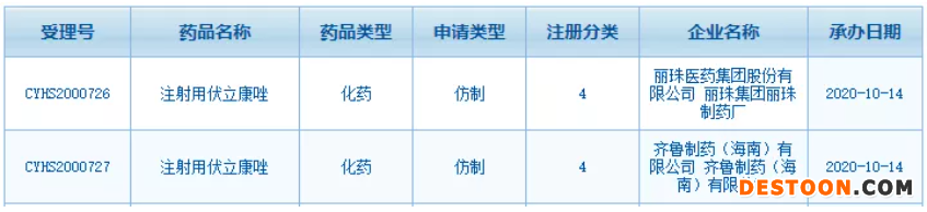 圖1:麗珠、齊魯申報(bào)的注射用伏立康唑注冊(cè)情況