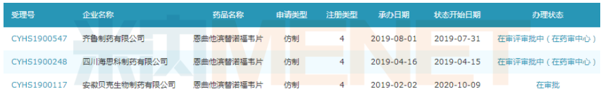 米內(nèi)網(wǎng)數(shù)據(jù)顯示,海思科和齊魯制藥的恩曲他濱替諾福韋片上市申請(qǐng)?jiān)趯徳u(píng)中,安徽貝克生物的恩曲他濱替諾福韋片注冊(cè)辦理狀態(tài)已變更為“在審批”,若順利獲批將成為國(guó)產(chǎn)第2家。