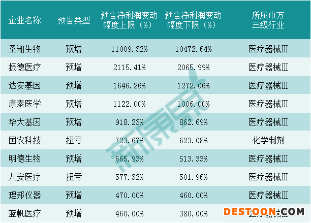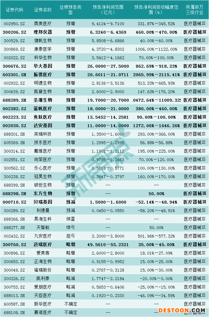 01、醫(yī)療器械企業(yè)表現(xiàn)依舊突出,最高凈利潤(rùn)預(yù)增110倍